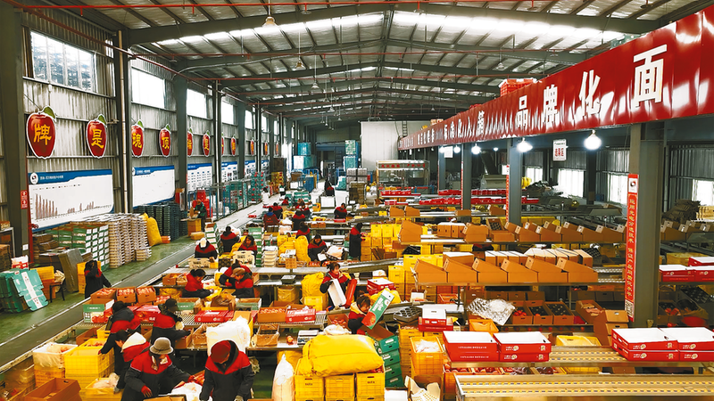 1月13日一大早,走进陕西王掌柜农业发展有限公司院内,装载苹果的冷链车正在排队等待工人装车,车间内一片繁忙热闹的景象,工人们正忙碌而有序地进行着分拣、打包、装箱,叉车来回穿梭。为了抓住春节销售黄金期,该公司策划了年货节、春节特供等系列促销活动,邀请“网红”直播带货,线上线下同步发力,全方位促进春节期间苹果销售。